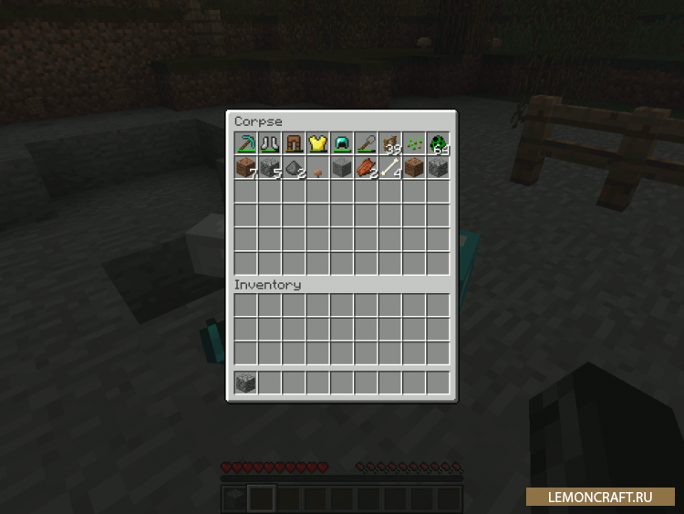 Мод Lootable Bodies позволяет получить ваши вещи, которые были при вас в момент вашей смерти. Для этого вам достаточно подойти к своему мертвому телу, нажать правую кнопку мыши и вы получите доступ к своему инвентарю. Ваше мертвое тело не подвержено никаким внешним воздействиям, поэтому его никто не сможет уничтожить, кроме вас. Что бы тело исчезло, нужно ударить по нему три раза лопатой. Не забудьте собрать дроп перед этим.